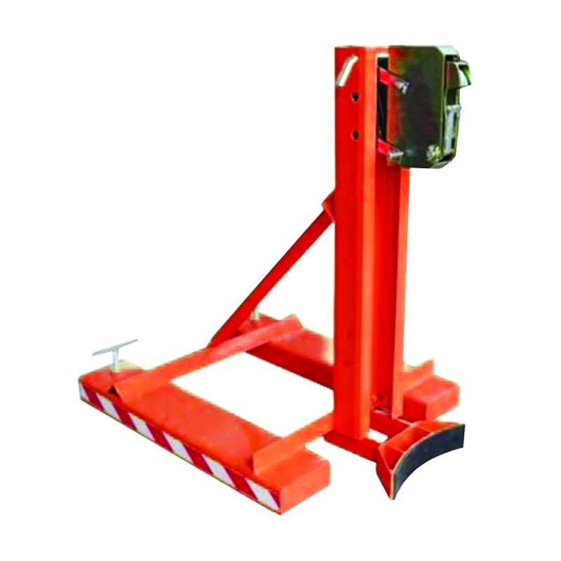 Pince pour la manutention de fûts en position verticale, préhension de la pince par les fourches du chariot élévateur, pour fûts métalliques 200 litres