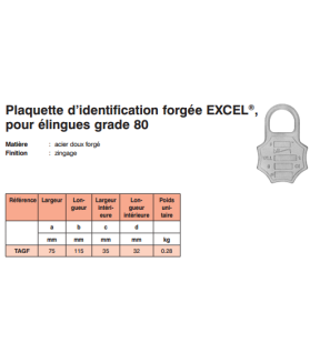Indication possible sur la plaque forgée de ; la CMU de l’élingue, le nombre et la longueur des brins, le diamètre de la chaîne...